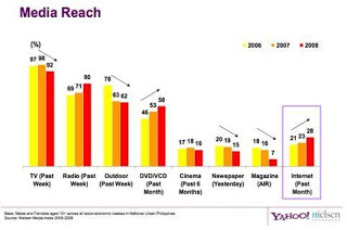 Yahoo! & Nielsen survey shows that there’s a slight decrease of tv viewership and print readership, as the “younger youth” now prefers web over these traditional communication mediums. from 2007’s 89% to 2008’s 92%, Pinoys show preference to web over tv. not that they no longer watch tv shows, but with shows now being streamed…