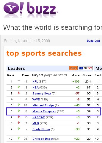 just to prove how much IT PINOYs utilized the web today, google trends listed the keys, “pacquiao vs cotto results” as top 8. yahoo buzz on the other hand listed “Manny Pacquiao” as 6th. meanwhile, both “pacman” and “cotto” became a top trending topic in Twitter.