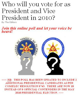 the may 2010 national elections is around the corner, if you’re looking for ways to see who’s leading in the polls and as an IT PINOY, you like to participate, check out aboutph.com for it’s own online poll!