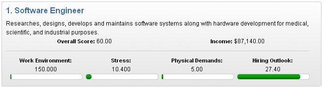with the emergence of smart phones and the cloud, technical positions involving computers have risen to the top of the rankings. Software Engineer, Computer Systems Analyst, Technical Writer and Computer Programmer, all rank within the top 30 this year.