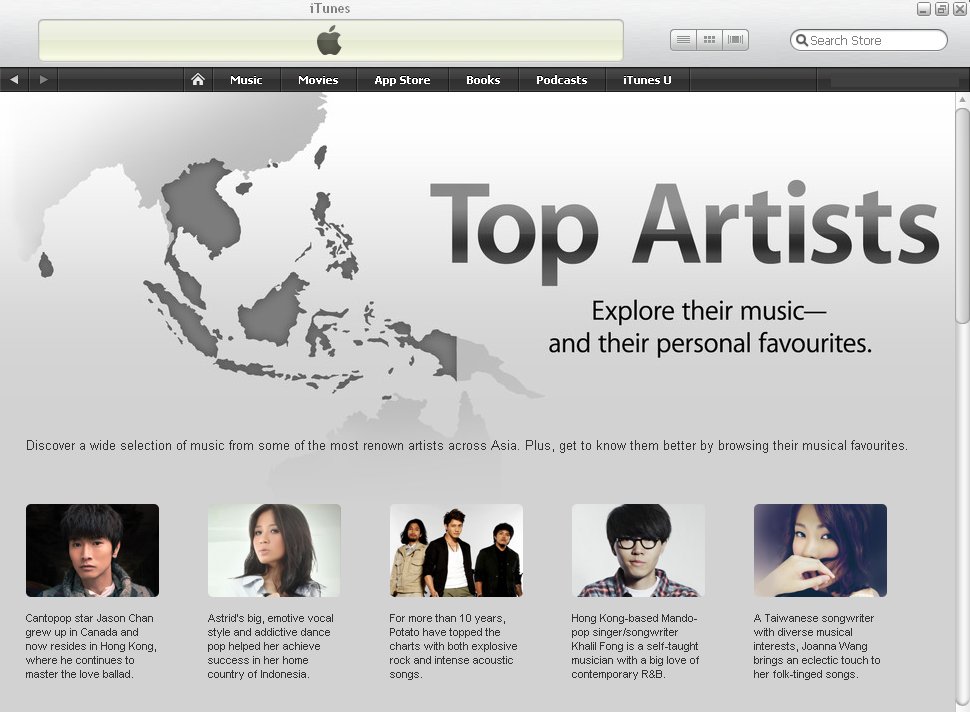 asian countries including Hongkong, Singapore, Taiwan, Brunei, Cambodia, Laos, Macau, Malaysia, Thailand, Sri Lanka and Vietnam, will now have access to iTunes Store, which comes in iTunes Plus, Apple’s DRM-free format with high-quality 256 kbps AAC encoding audio.