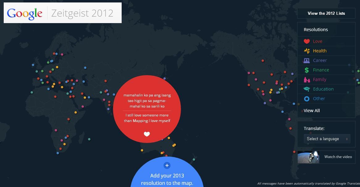 check out how Google mapped all of these. You can also log yours about – Love, Health, Career, Finance, Family, Education and others.